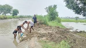 सहार। गांव पुर्वा तरा के पास रजबहा में पानी आने से करीब 10 एकड़ धान की पौध डूब गई। इससे किसानों को नुकसान हुआ। किसानों की सूचना पर नहर विभाग की टीम ने खंदी को बंद किया।मंगलवार की रात पानी से रजबहा की पटरी कट गई थी। इससे रजबहा का पानी आसपास के खेतों में भर गया। रजबहे के पानी से करीब 10 एकड़ धान की पौध जलमग्न हो गई। किसानों की सूचना पर सीओ बिधूना पी. पुनीत मिश्र व थाना प्रभारी पंकज मिश्रा मौके पर पहुंचे और वहां का जायजा लिया। इसके बाद नहर विभाग को अवगत कराया।