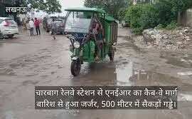 चारबाग रेलवे स्टेशन से एनईआर का कैब-वे मार्ग बारिश से हुआ जर्जर, 500 मीटर में सैकड़ों गड्ढे