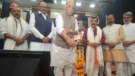 व्यापारी मिलन समारोह में रक्षा मंत्री राजनाथ सिंह,