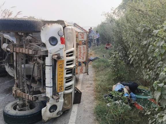 बिधूना। बेला-बिधूना मार्ग पर मुनुआ पुरवा मोड़ के पास शुक्रवार सुबह पिकअप वाहन एक्सल टूटने से सड़क पर पलट गई। हादसे में वाहन सवार एक की मौत हो गई और चार गंभीर रूप से घायल हो गए। सभी को बेला व बिधूना के सीएचसी भेजा गया, जहां से उन्हें तिर्वा मेडिकल कॉलेज रेफर कर दिया गयाकन्नौज के बिलंदपुर से सूकर लादकर पिकअप वाहन हरदोई की मंडी जा रहा था। सुबह नौ बजे के करीब मनुआ पुरवा मोड़ के पास पिकअप का एक्सल टूट गया। इससे वाहन अनियंत्रित होकर सड़क पर पलट गया। दुर्घटना में बिलंदापुर सौंरिख निवासी राजेश्वर कठेरिया (45) की दबकर घटना स्थल पर ही मौत हो गई। वहीं कबीरपुर निवासी विनोद वाल्मीकि, शेखपुर छिबरामऊ निवासी चालक प्रमोद कुमार, बिलंदपुर निवासी मिजाजीलाल और सौंरिख निवासी सुभाष गंभीर रूप से घायल हो गए। हादसे की सूचना पर थानाध्यक्ष गंगादास गौतम पुलिस बल के साथ मौके पर पहुंचे। घायलों को एंबुलेंस से सरकारी अस्पताल बेला व बिधूना पहुंचाया गया। बिधूना अस्पताल पहुंचे राजेश्वर कठेरिया को डॉक्टरों ने को मृत घोषित कर दिया। अन्य गंभीर घायलों को प्राथमिक उपचार के बाद रेफर कर दिया गया।