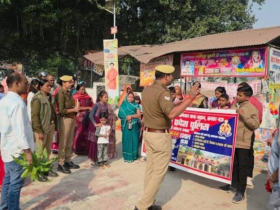 मऊ सीतला माता धाम पहुंची महिला एंटी रोमियो स्क्वाड,