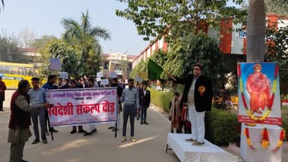प्रबंधक गुरु नारायण अग्रवाल ने हरी झंडी दिखाकर दौड़ को रवाना किया। विद्यालय से निकलकर नगर के मुख्य मार्गों से गुजरे छात्र हाथों में तख्तियां लेकर स्वदेशी अपनाना है, भारत को आत्मनिर्भर बनाना है… का संदेश दे रहे थे। इस दौरान सूर्य नमस्कार का भी आयोजन किया गया। इस दौरान तेज सिंह, राजीव चतुर्वेदी, प्रधानाचार्य राजेश गुप्ता, शारीरिक प्रमुख ऋषि आदि मौजूद रहे।