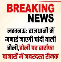लखनऊ- राजधानी में मनाई जाएगी चांदी वाली होली, होली पर सर्राफा बाजारों में जबरदस्त रौनक, सर्राफा बाजार में चांदी की पिचकारी बनी आकर्षण, चांदी की बाल्टी और गुलाल सेट की बढ़ी मांग, ग्राहकों में चांदी की मिठाइयों को लेकर खास उत्साह, लड्डू गोपाल की चांदी की प्रतिमाएं भी खूब बिक रहीं, उपहार स्वरूप चांदी के सामान देने का बढ़ा चलन, होली को खास बनाने के लिए लोग कर रहे खास खरीदारी, सर्राफा व्यापारियों के चेहरे खिले, बिक्री में उछाल, चांदी की पिचकारी से रंग खेलने की तैयारी
