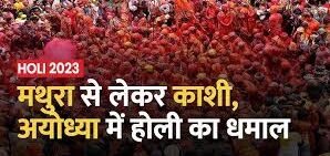 मथुरा, वाराणसी, अयोध्या सहित पूरा प्रदेश होली के रंग में रंग गया है। हर तरफ उल्लास का माहौल है। लोग होली पर मस्ती में नजर आ रहे हैं। जगह-जगह हो रहे आयोजनों में लोग रंगों में सरोबार हो रहे हैं। ढोल-नगाड़े के साथ लोग मस्ती में झूम रहे हैं।