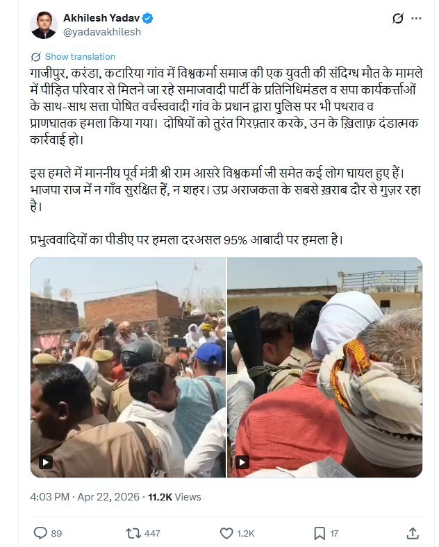 देशफटाफट ख़बरेंराजनीतिराज्यविदेश लखनऊ, सपा प्रतिनिधिमंडल पर हमला By 7bharatnews 24/04/2026 0 4 Share FacebookTwitterPinterestWhatsAppLinkedinReddItEmailPrintTumblrTelegramMixVKDiggLINEViberNaverFlip यह भी पढ़े एटा, स्कूली वैन खाई में पलटी, 24/04/2026 झांसी, तेज रफ्तार स्कॉर्पियो का कहर, 24/04/2026 फर्रुखाबाद, इंजेक्शन लगाते ही महिला की मौत, 24/04/2026 बागपत, यमुना नदी में ट्रैक्टर-बुग्गी गिरी, 4 लोग डूबे, 24/04/2026 7bharatnewshttps://7bharatnews.in लखनऊ, सपा प्रतिनिधिमंडल पर हमले का मामला, 29 अप्रैल को गाजीपुर जाएंगे अखिलेश यादव, पीड़ितों से करेंगे मुलाकात Share FacebookTwitterPinterestWhatsAppLinkedinReddItEmailPrintTumblrTelegramMixVKDiggLINEViberNaverFlip Previous articleलखनऊ, IAS की तैयारी कर रही छात्रा से दुष्कर्मNext articleलखनऊ, कांग्रेस प्रवक्ता सुरेंद्र राजपूत का केजरीवाल पर हमला, - Advertisement - ट्रेंडिंग न्यूज़ एटा, स्कूली वैन खाई में पलटी, 24/04/2026 झांसी, तेज रफ्तार स्कॉर्पियो का कहर, 24/04/2026 फर्रुखाबाद, इंजेक्शन लगाते ही महिला की मौत, 24/04/2026 LEAVE A REPLY Cancel reply Comment: Please enter your comment! Name:* Please enter your name here Email:* You have entered an incorrect email address! Please enter your email address here Website: Save my name, email, and website in this browser for the next time I comment. Advertisement अन्य खबरे एटा, स्कूली वैन खाई में पलटी, 24/04/2026 झांसी, तेज रफ्तार स्कॉर्पियो का कहर, 24/04/2026 फर्रुखाबाद, इंजेक्शन लगाते ही महिला की मौत, 24/04/2026 बागपत, यमुना नदी में ट्रैक्टर-बुग्गी गिरी, 4 लोग डूबे, 24/04/2026 एटा, खेत में संदिग्ध हालत में लगी आग 24/04/2026